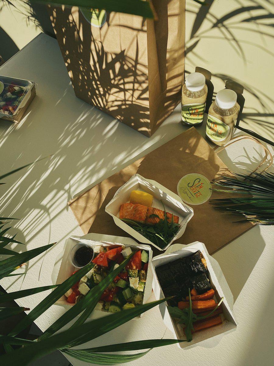 КБЖУ: 279/16/4/23 Сырная вафля с гуаккомоле и яйцом пашот КБЖУ: 11/ 6,5/5/29 Шу с шоколадным кремом КБЖУ: 410/42/10/35 Рваная индейка на пару с фарфалле КБЖУ: 289/19/19/6 Салат с креветками, моцареллой и песто КБЖУ: 347/39/ 4/ 37 Куриный шашлык с овощами